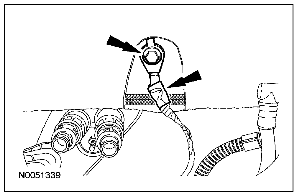 61. Remove the bolt and the ground wire from the front of the bulkhead.