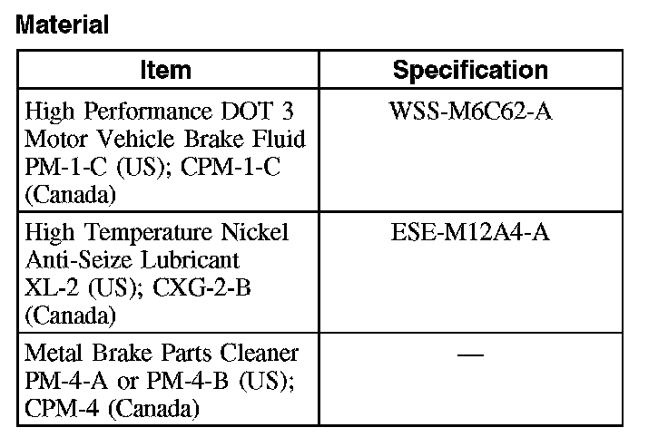 CAUTION: Brake fluid is harmful to painted and plastic surfaces. If brake fluid is spilled onto a painted or plastic surface, immediately wash it with water.