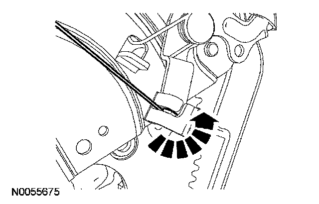 7. Compress the 2 tabs and disconnect the parking brake release cable from the parking brake control assembly.