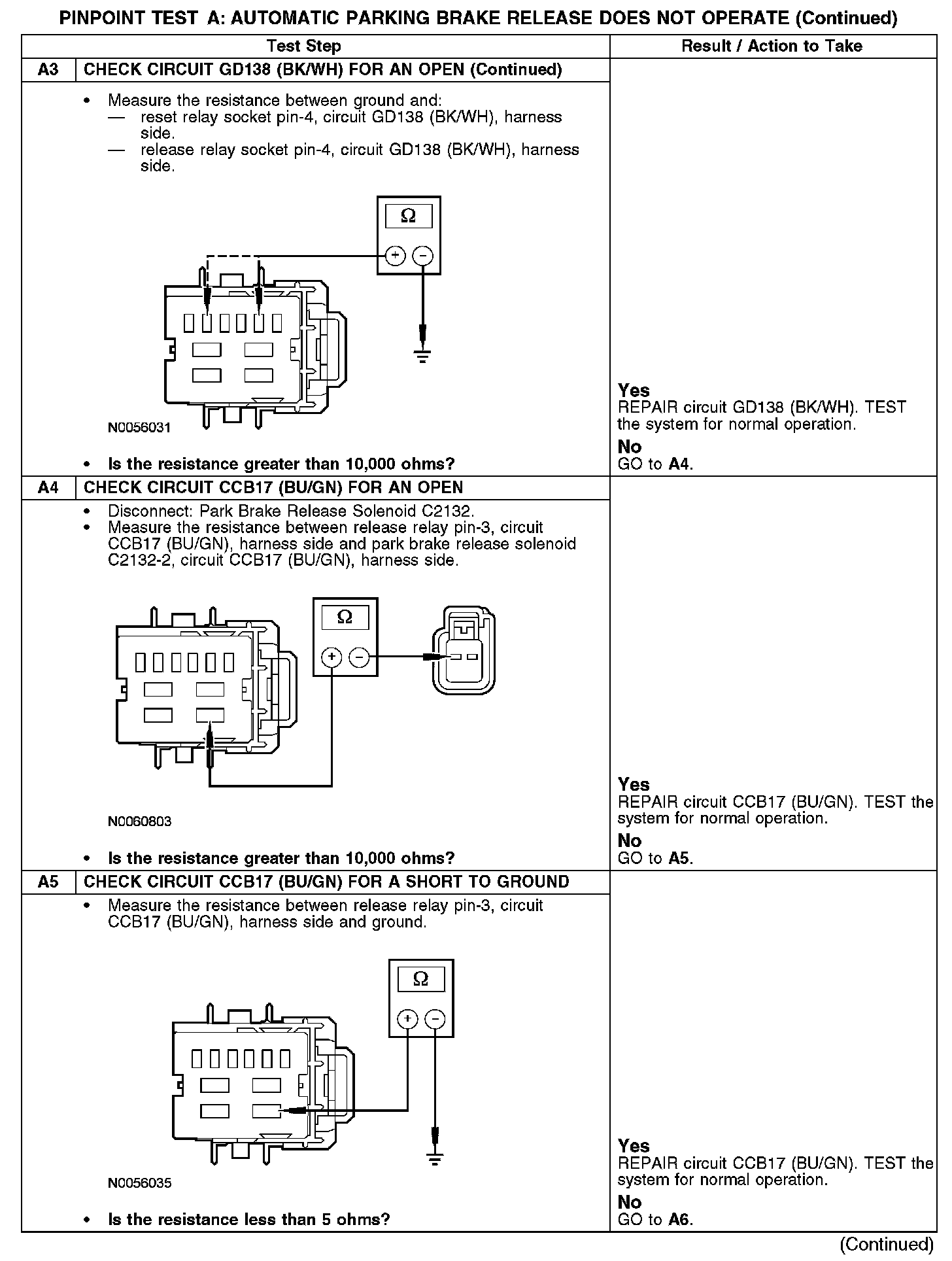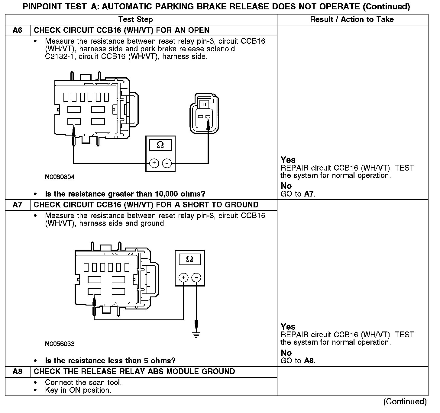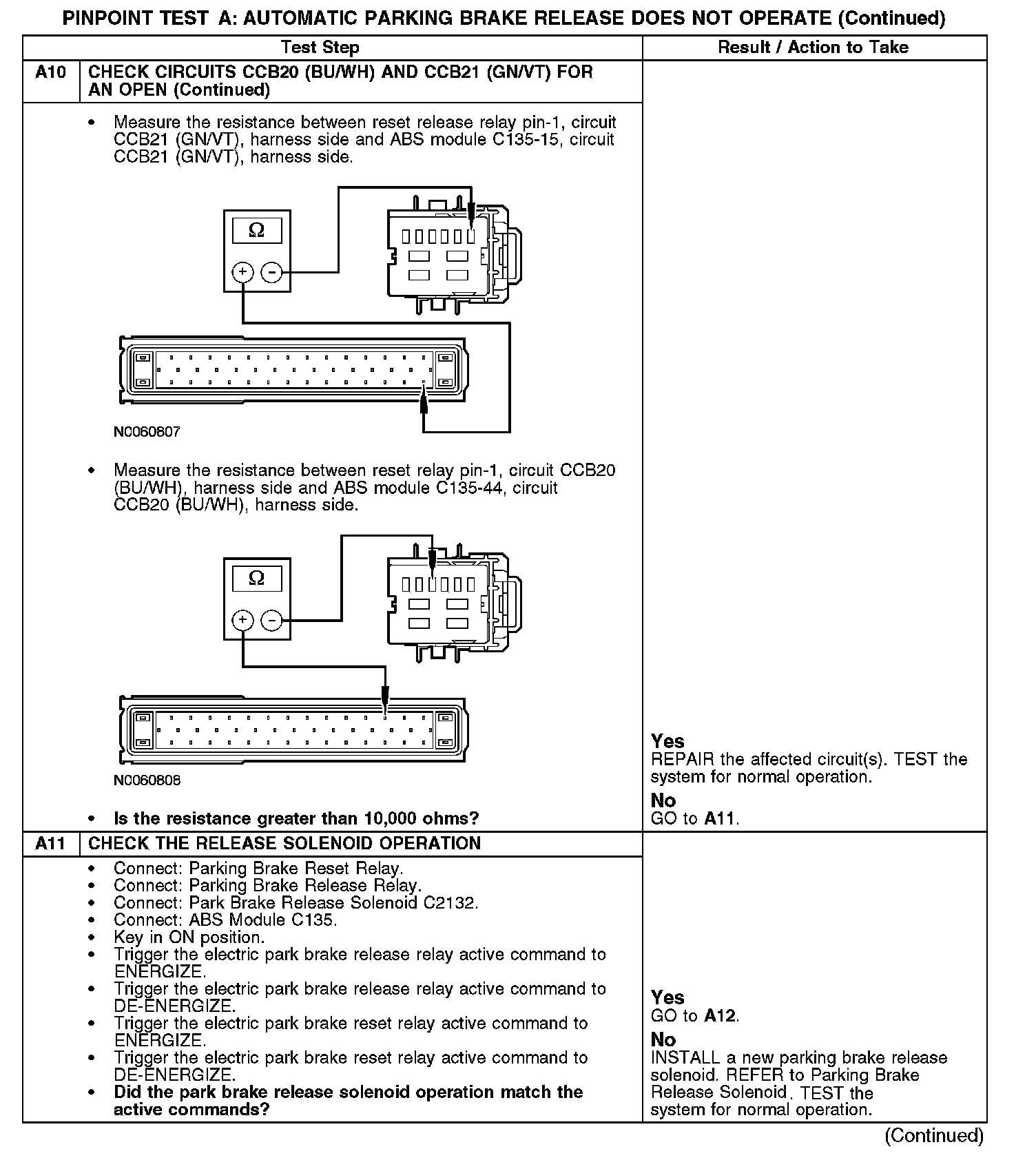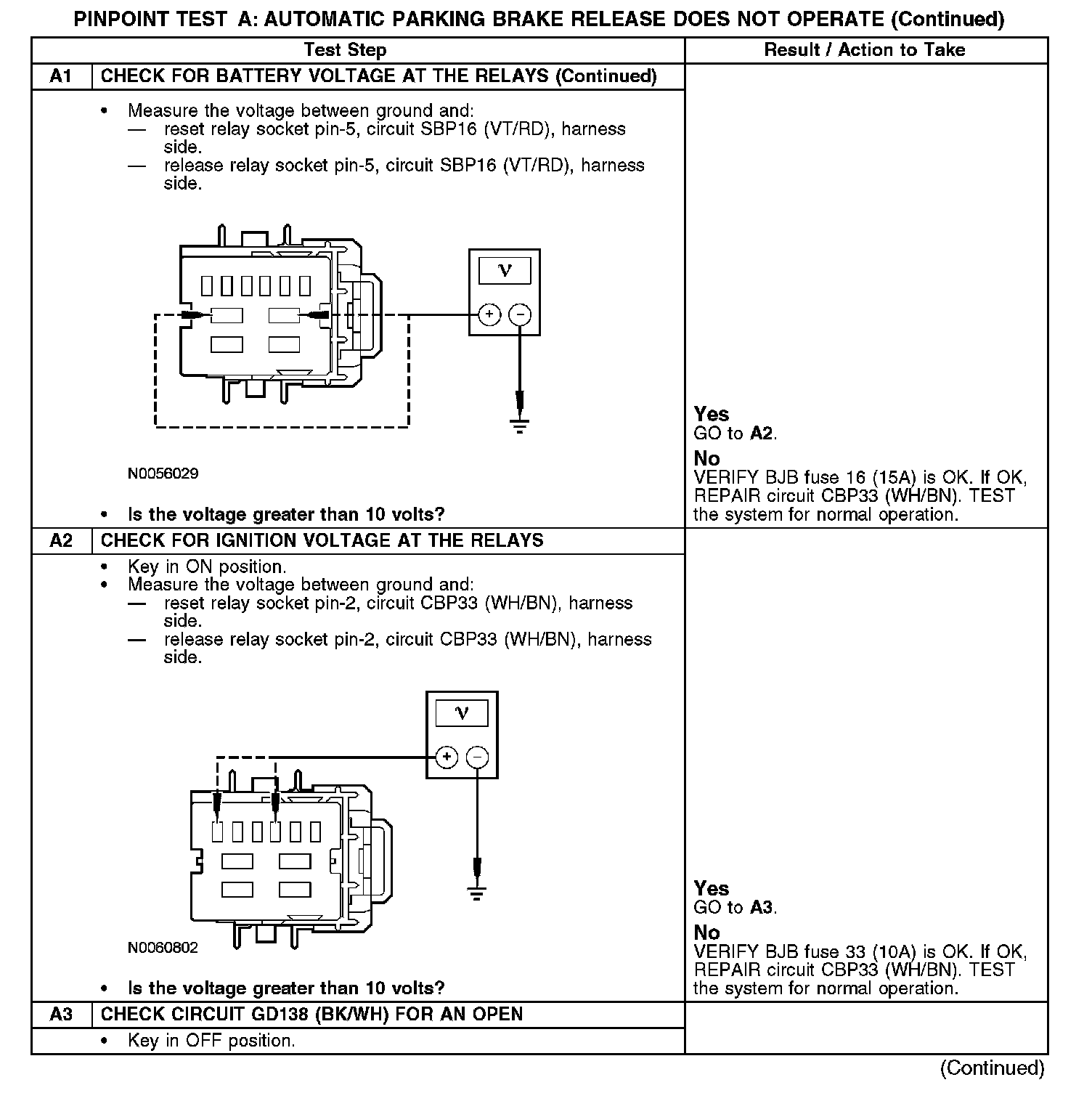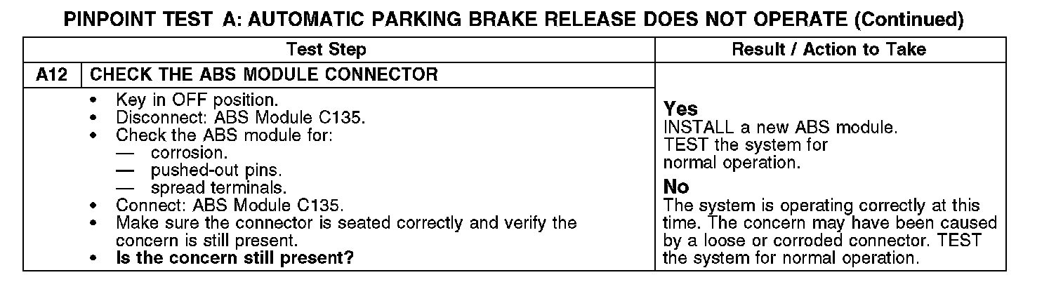 PINPOINT TEST A: AUTOMATIC PARKING BRAKE RELEASE DOES NOT OPERATE
