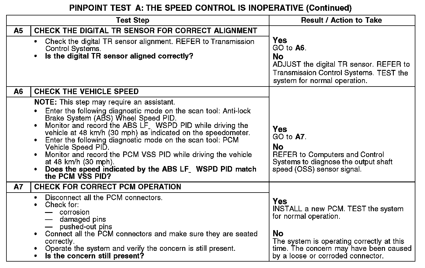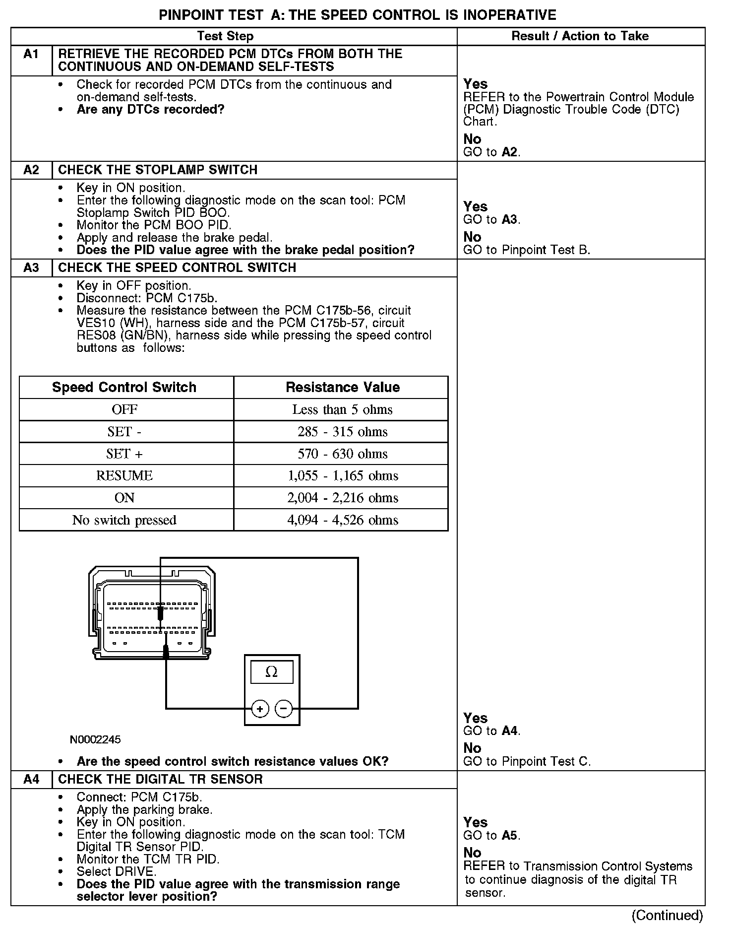 PINPOINT TEST A: THE SPEED CONTROL IS INOPERATIVEA1-A4: