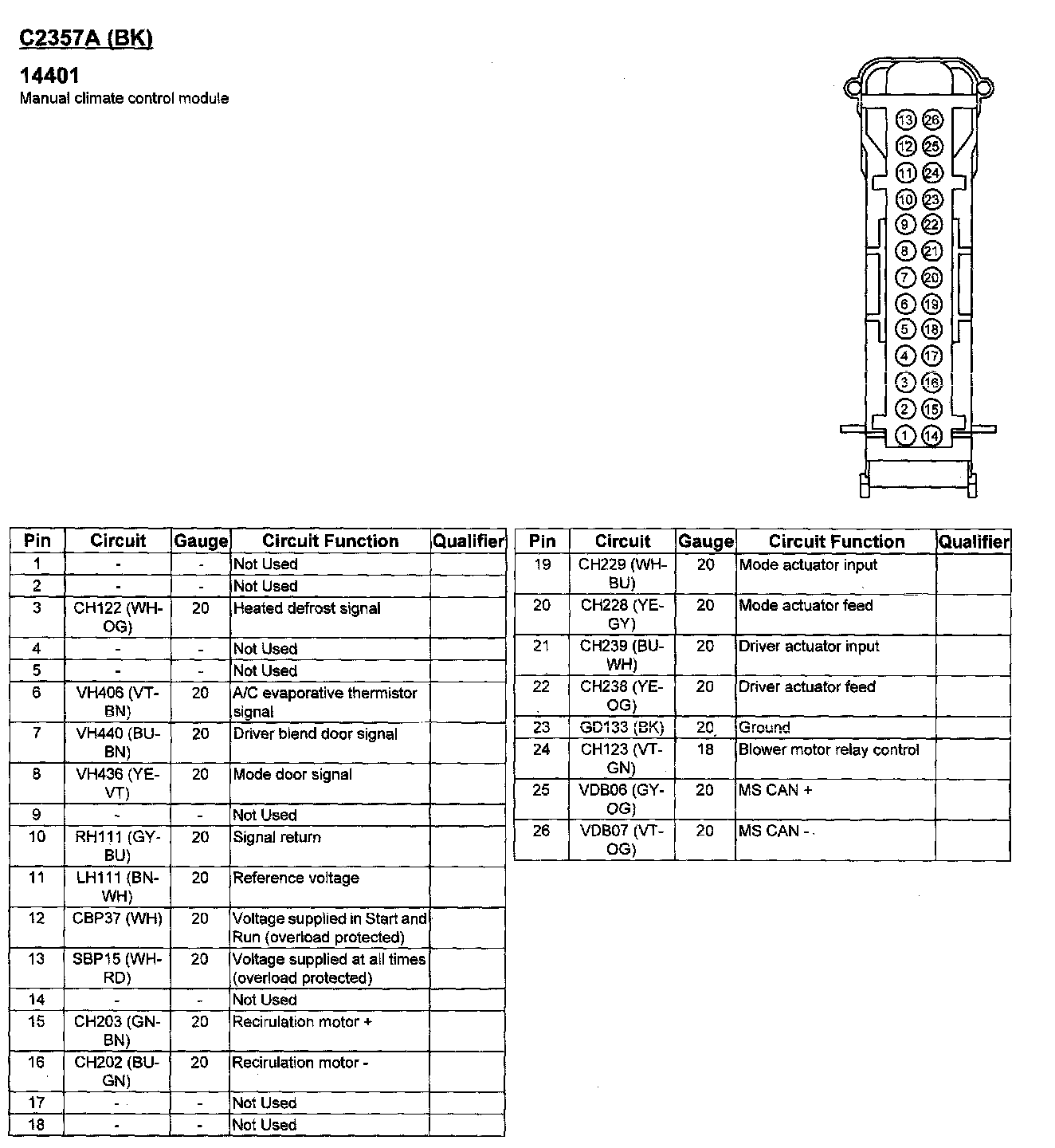 Manual Climate Control Module