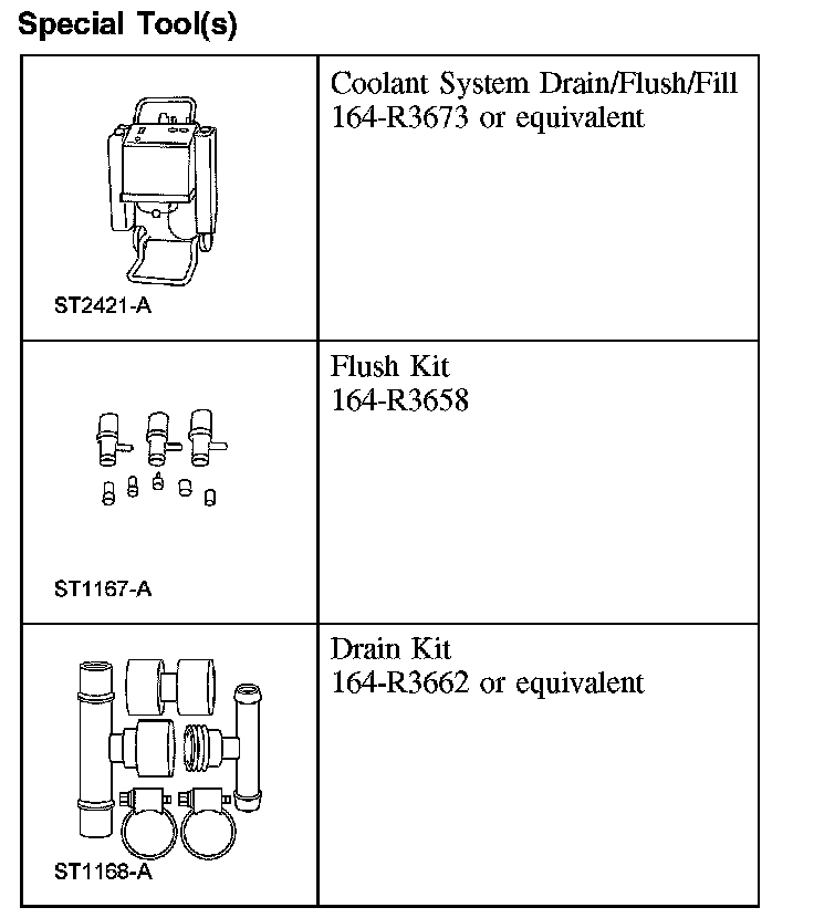 Use cooling system Flush-All, Flush Kit Hardware Package and Drain kit to flush the engine and radiator.