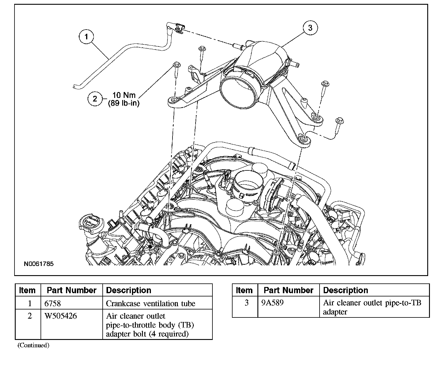 22. Install the air cleaner outlet pipe. For additional information, refer to Fuel Delivery and Air Induction.