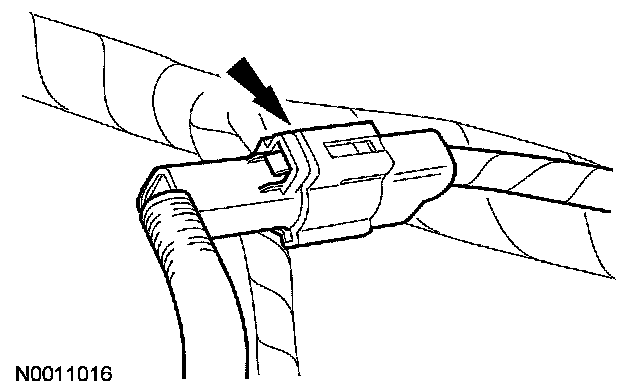 16. Position the EVAP hose and connect the quick connect coupling to the intake manifold. For additional information, refer to Fuel Delivery and Air Induction.