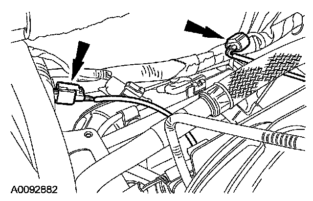 3. Disconnect the fuel supply hose spring lock coupling from the fuel rail. For additional information, refer to Fuel Delivery and Air Induction.