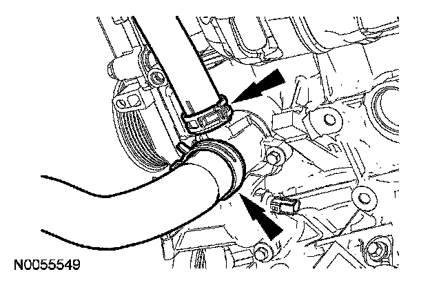 10. Disconnect the 2 coolant hoses from the oil filter adapter.