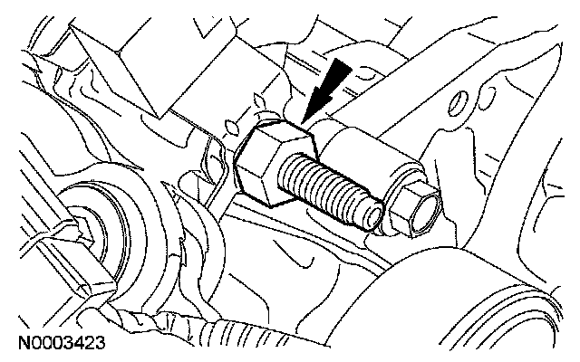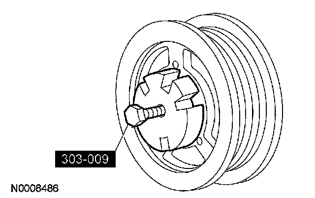 37. Remove and discard the crankshaft pulley bolt. Using the special tool, remove the crankshaft pulley.