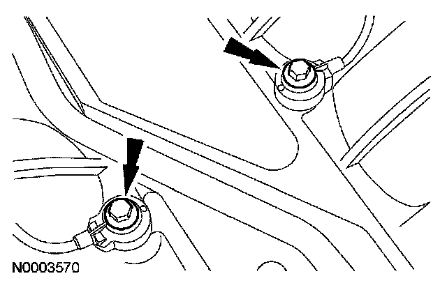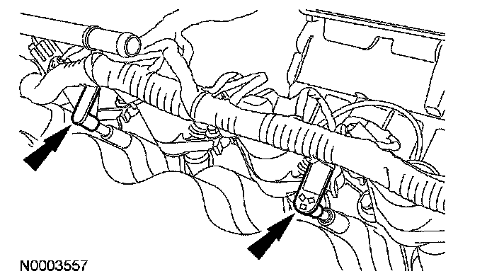 14. Disconnect the 2 engine wiring harness retainers from the RH valve cover studs.