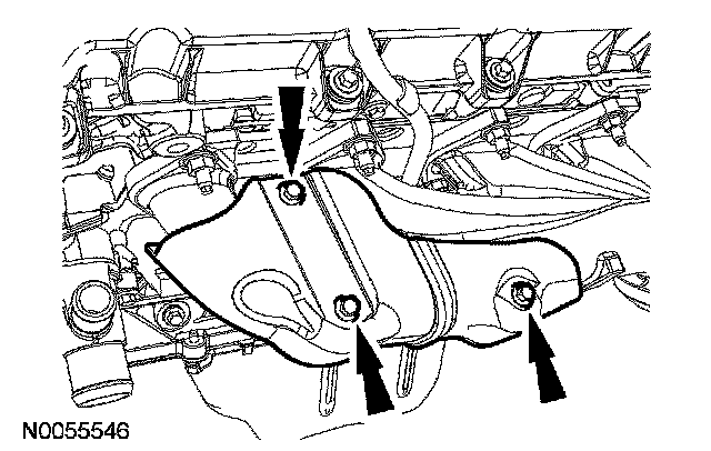 30. Remove the 3 bolts and the LH exhaust manifold heat shield.