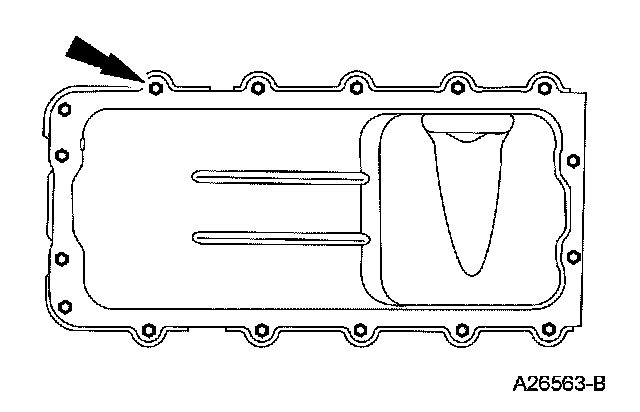 39. Remove the bolts, oil pan and discard the oil pan gasket.