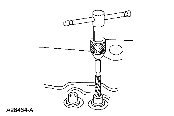 3. If the valve guide is not within specifications, ream the valve guide and install a valve with an oversize stem or remove the valve guide and install a new valve guide.