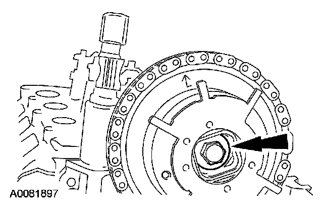 Using the special tool, remove the bolt and the LH VCT phaser sprocket assembly.