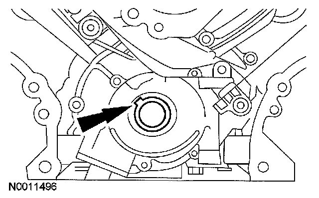 ^ The camshaft front thrust bearing cap contains an oil metering groove. Make sure the groove is free of foreign material.