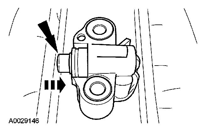 7. Install a retaining clip on the tensioner to hold the plunger in during installation.