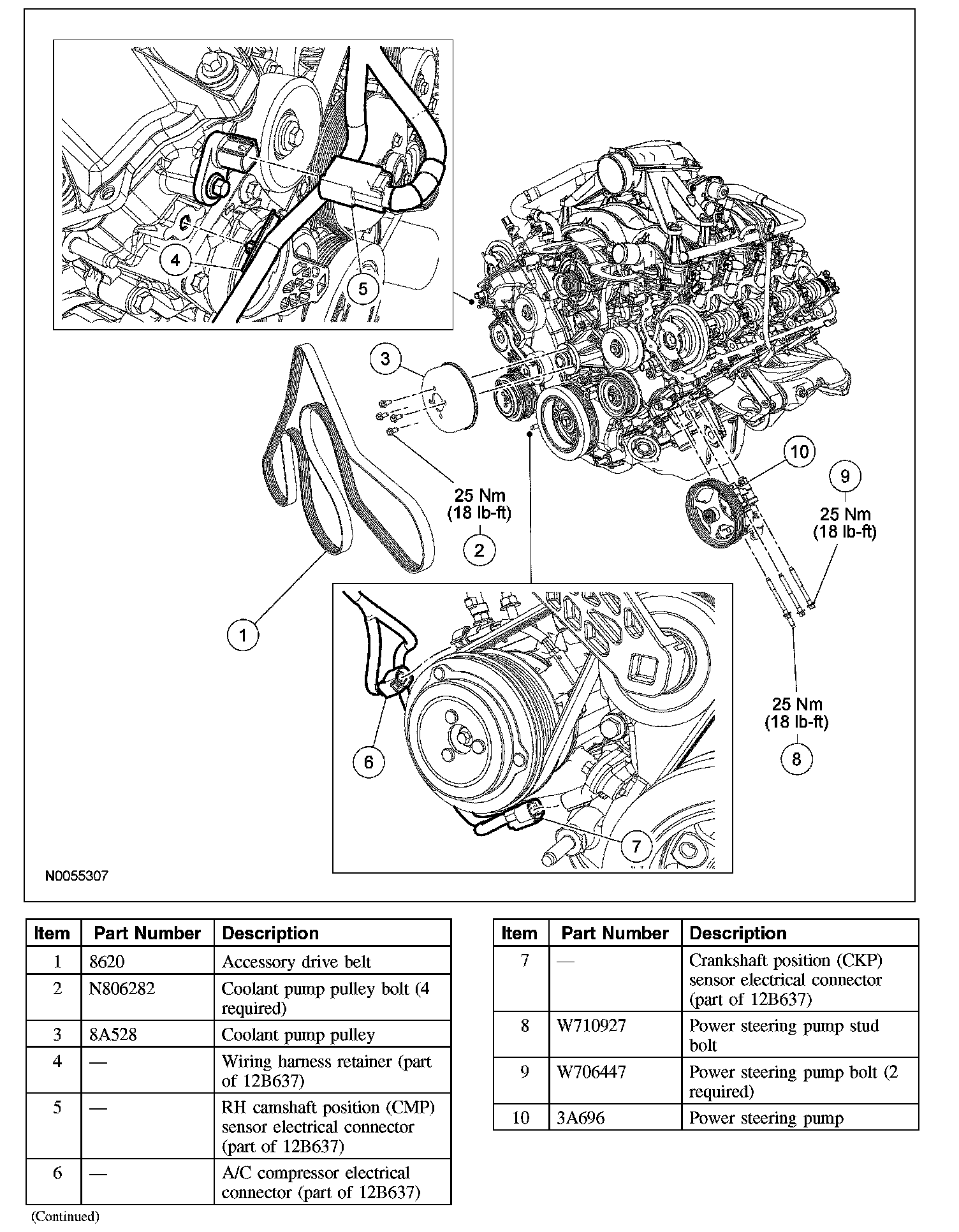 Stage 2: Tighten fasteners 6 and 7 to 48 Nm (35 ft. lbs.)