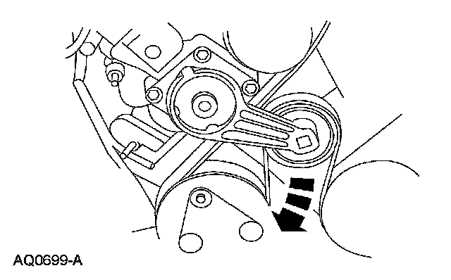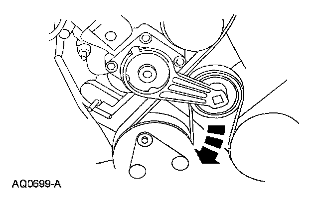 7. Rotate the tensioner clockwise and remove the accessory drive belt.
