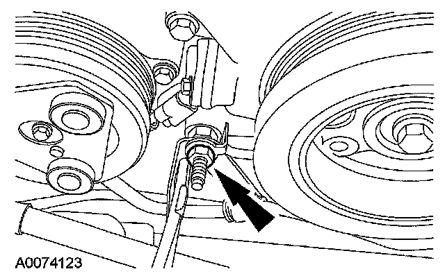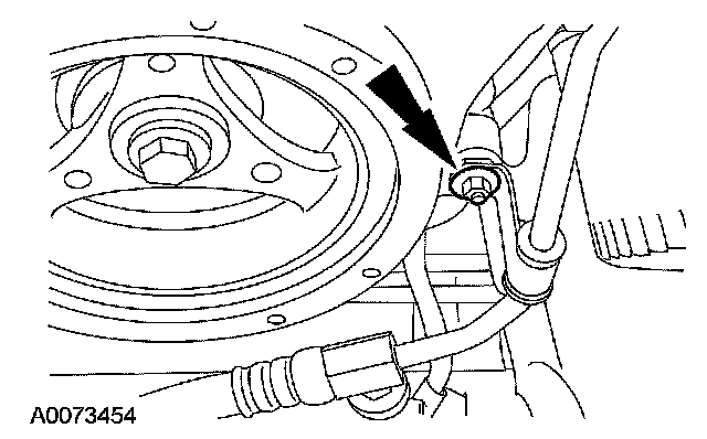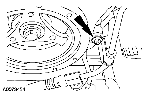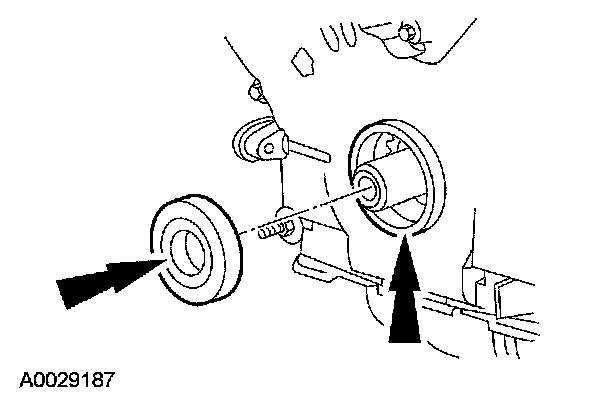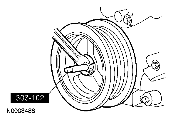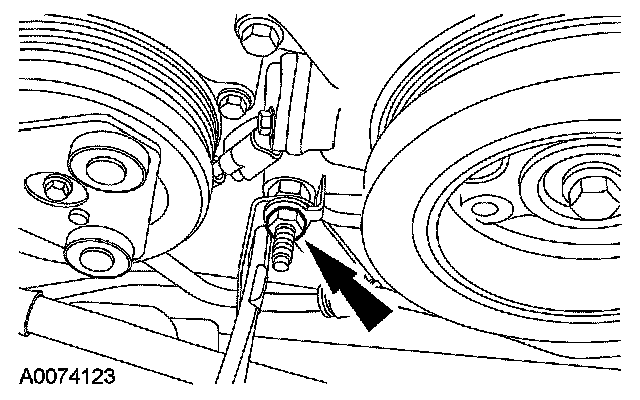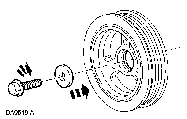 10. Remove the crankshaft pulley bolt and washer. - Discard the crankshaft pulley bolt.