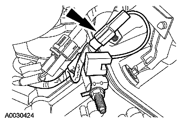 25. Disconnect the wiring harness position retainer and the engine oil pressure (EOP) switch electrical connector and position the wiring harness aside.