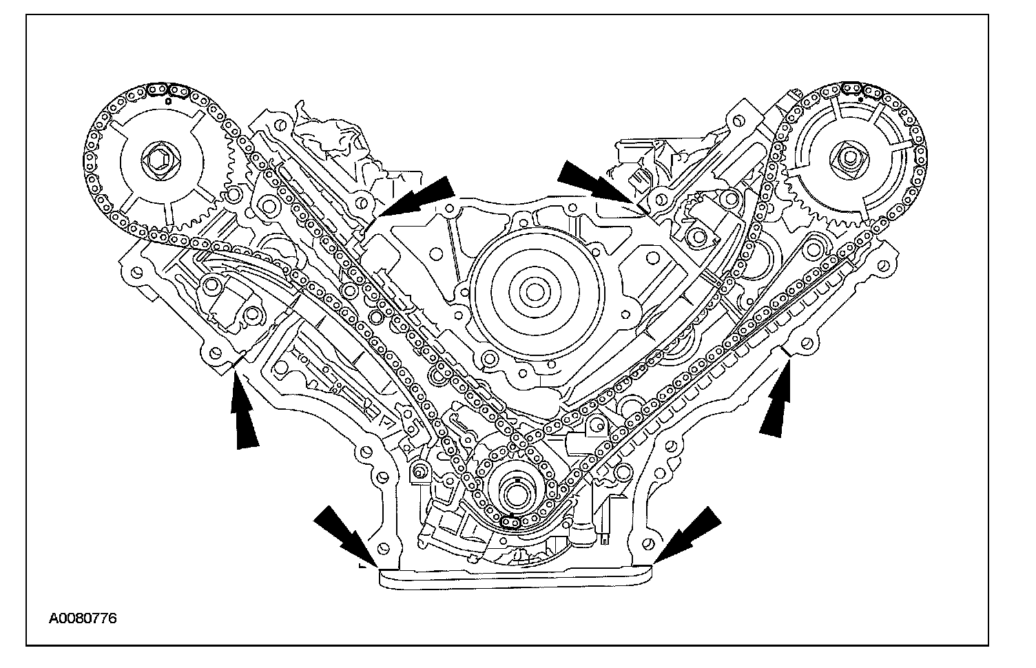 Apply a bead of silicone gasket and sealant along the cylinder head-to-cylinder block surface and the oil pan-to-cylinder block surface, at the locations shown.