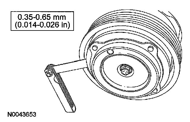 10. Measure and adjust the clutch air gap by removing or adding A/C clutch disc and hub spacers.