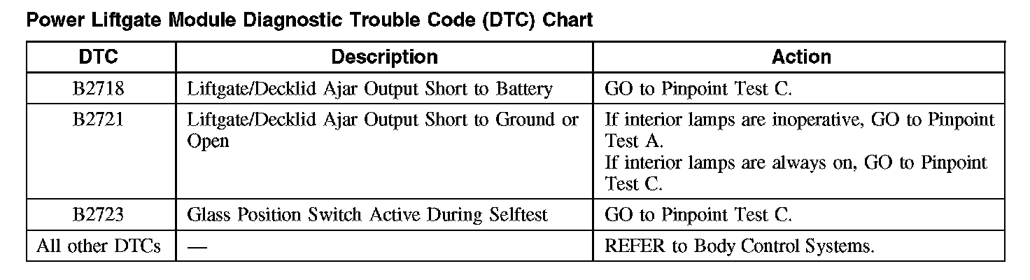 Power Liftgate Module Diagnostic Trouble Code (DTC) Chart