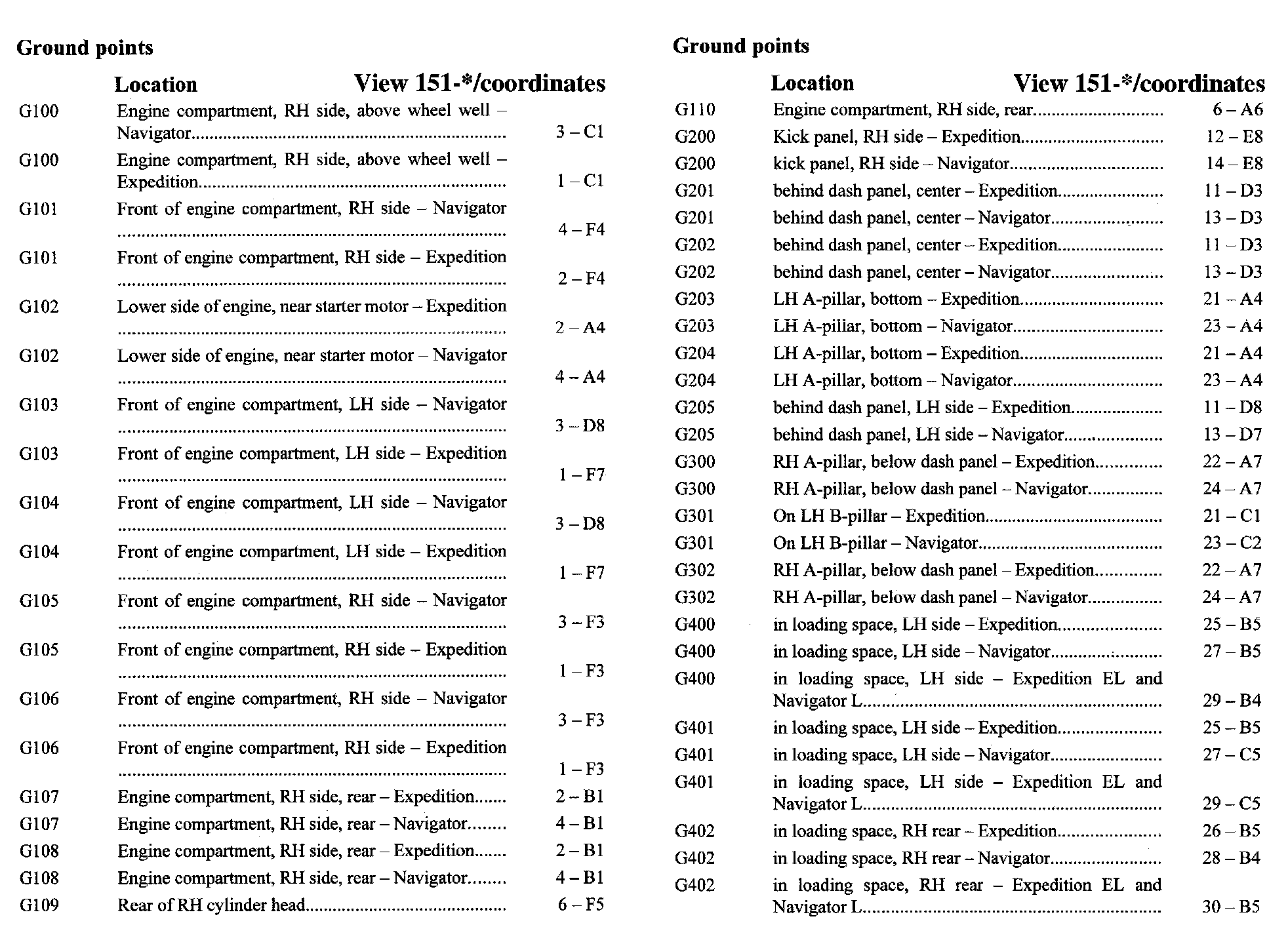 If a link on the Grounds Location Index to a View is not provided, that means that the Grounds and/or View in question does NOT apply to the vehicle model selected.