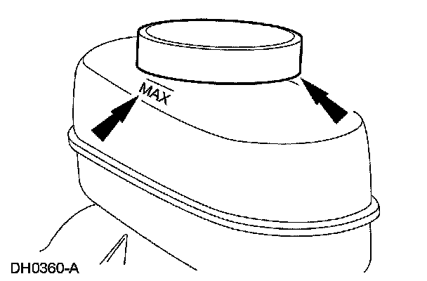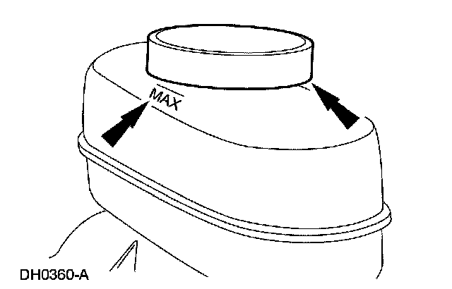 8. Fill the brake master cylinder reservoir with clean, specified brake fluid and install the brake master cylinder filler cap.