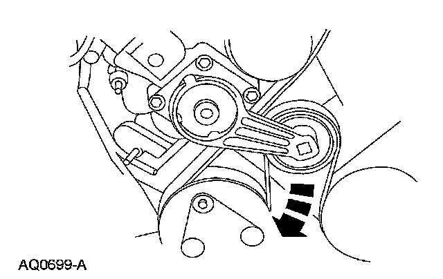 1. Rotate the accessory drive belt tensioner clockwise and remove the accessory drive belt.