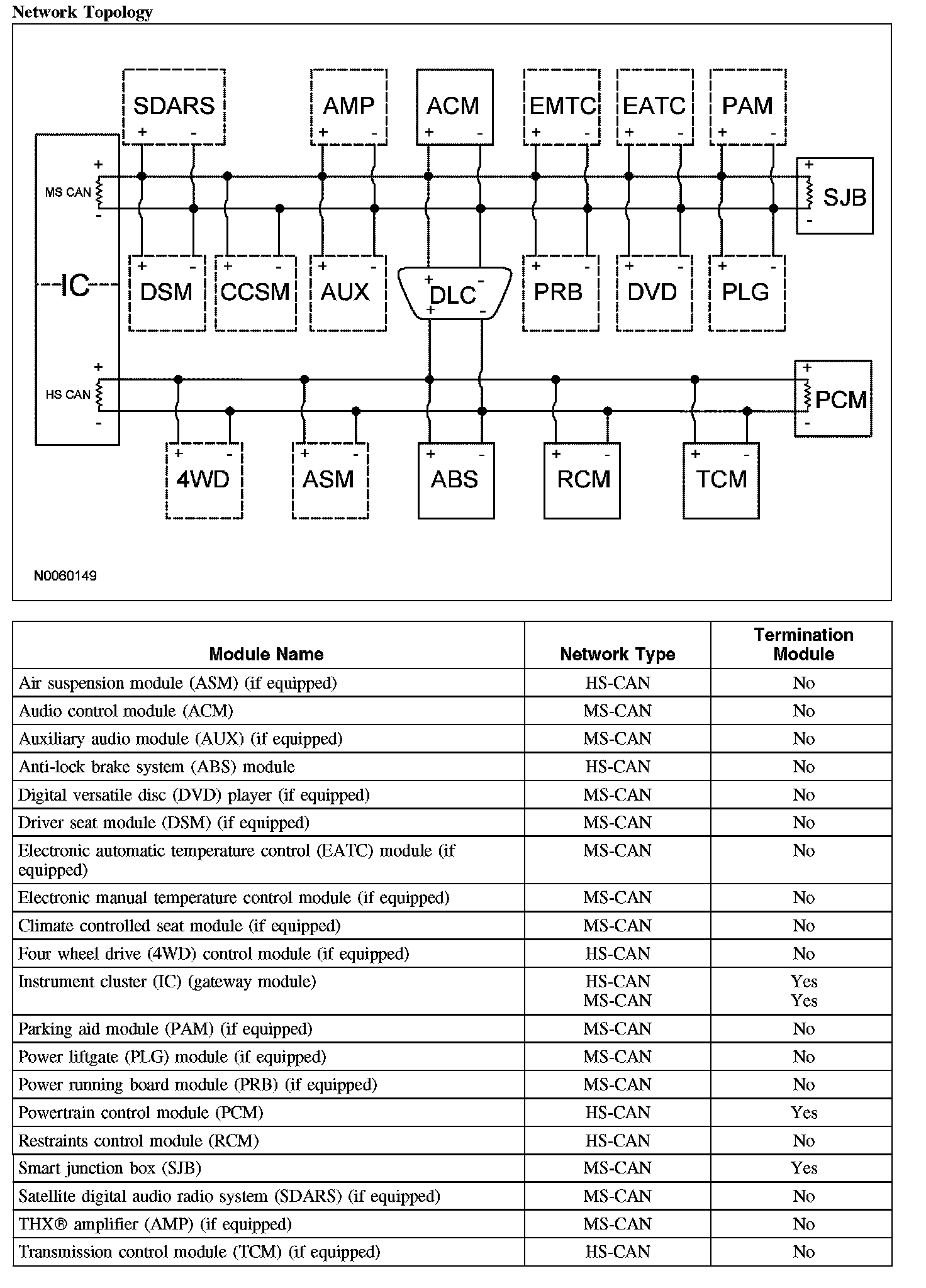 The instrument cluster is the gateway module, translating HS-CAN to MS-CAN and vice versa. This information allows a message to be distributed throughout both networks. The instrument cluster is the only module on this vehicle that has this ability.