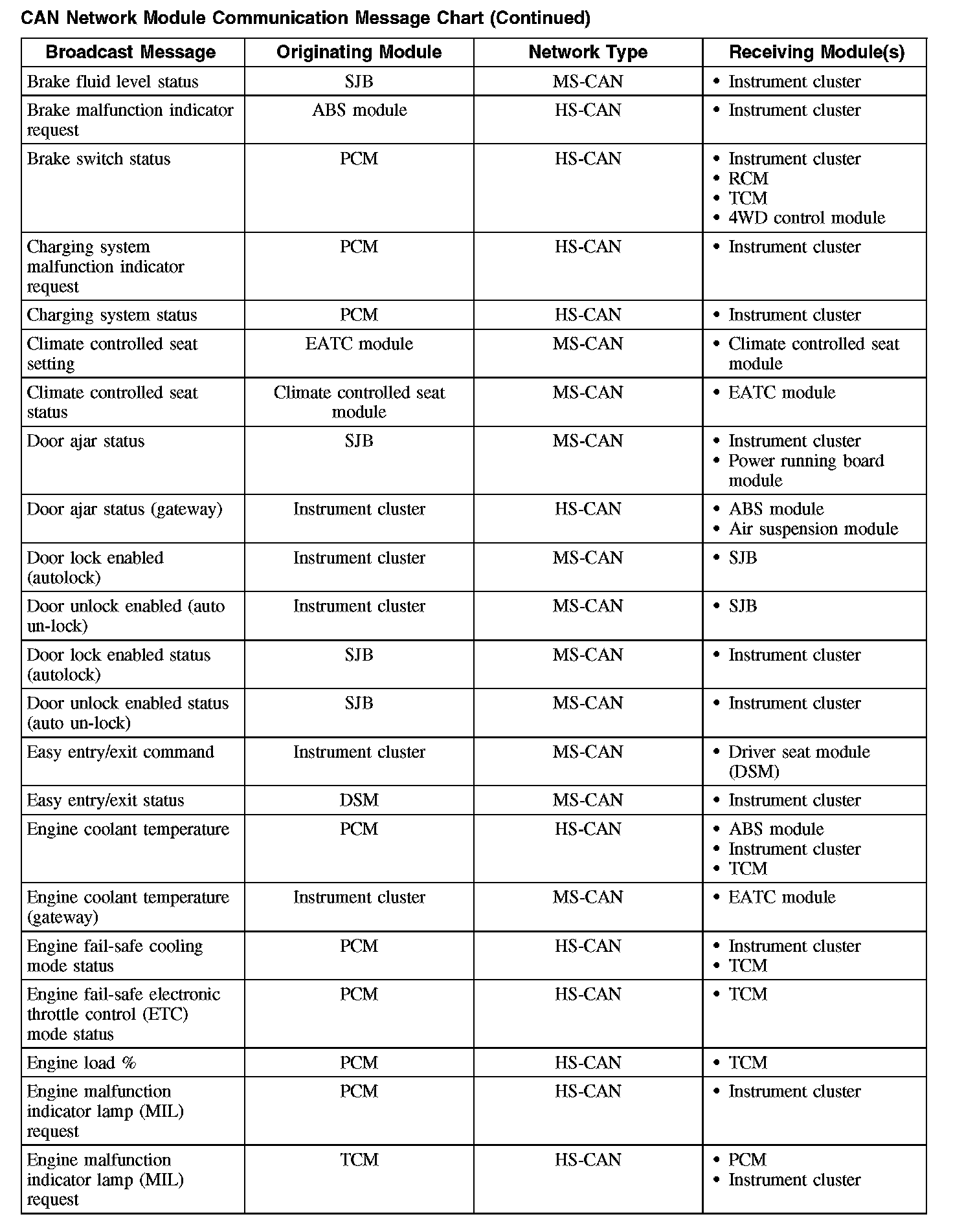 The MS-CAN network operates at a maximum data transfer speed of 125 Kbps for bus messages and designed for general information transfer. The network will remain operational, but at a degraded level when certain circuit faults are present. The HS-CAN network may remain operational with only one termination resistor present.