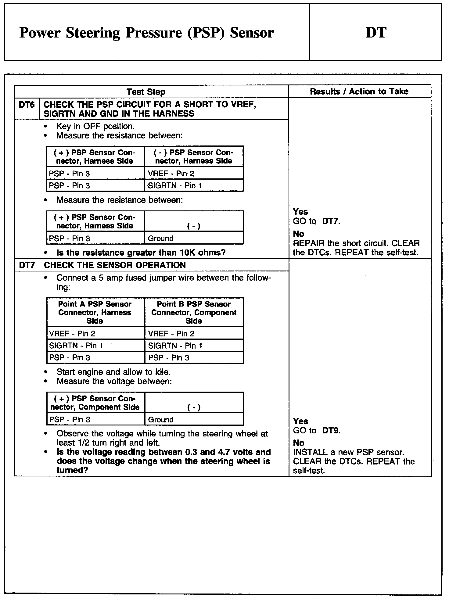 Tests DT: Power Steering Pressure (PSP) Sensor