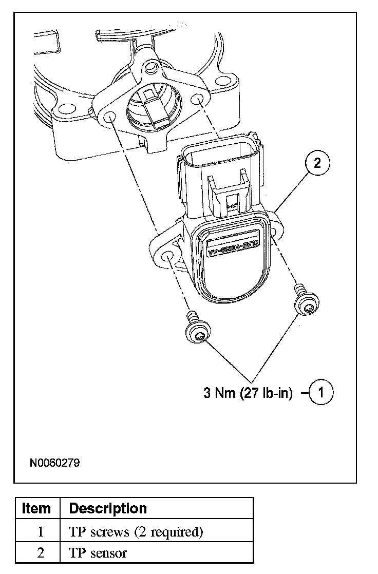 NOTE: When installing the new TP sensor, make sure that the radial locator tab on the TP sensor is aligned with the radial locator hole on the throttle body.