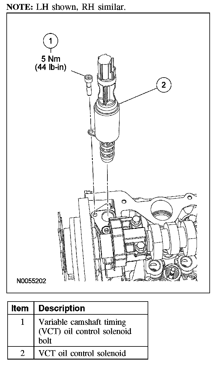 VARIABLE CAMSHAFT TIMING (VCT) OIL CONTROL SOLENOIDRemoval and Installation