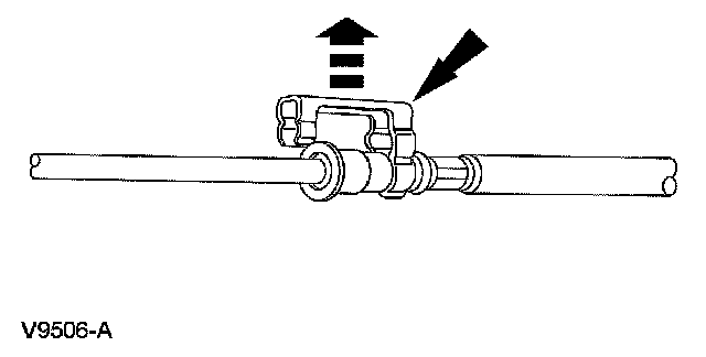 - When reusing liquid or vapor tube connectors, make sure to use compressed air to remove any foreign material from the connector retaining clip area before separating from the tube. Apply clean engine oil to the end of the tube before inserting the tube into the connector.