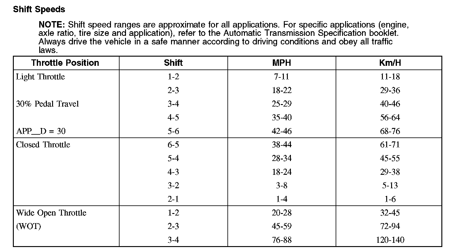 Shift Speeds: