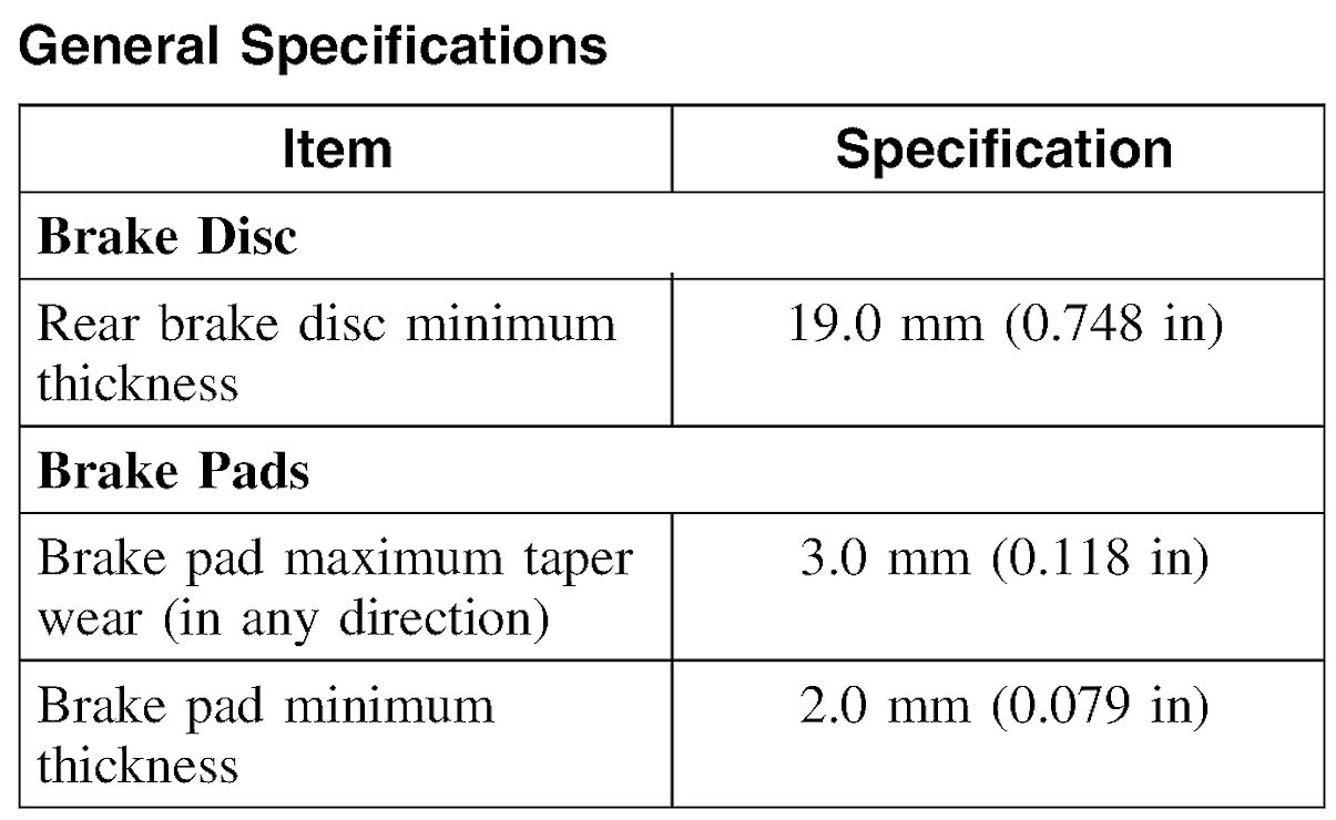 General Specifications, Rear