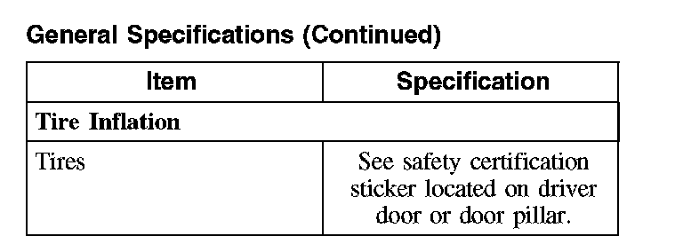 Inflate the tire to the pressure specified on the safety certification sticker located on the driver door or door pillar.