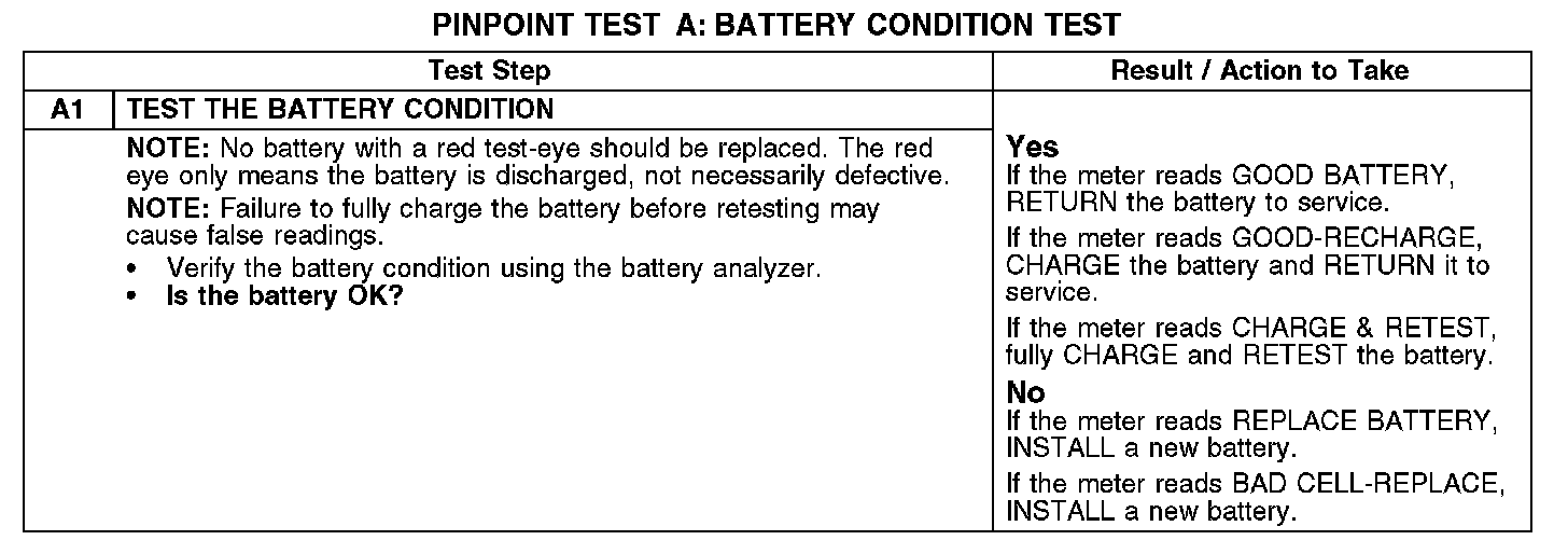 PINPOINT TEST A: BATTERY CONDITION TEST