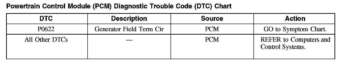 Powertrain Control Module (PCM) Diagnostic Trouble Code (DTC) Chart