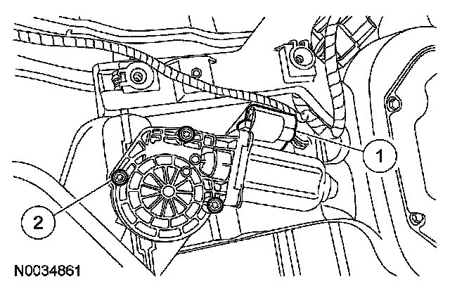 3. NOTE: Use a flat-blade screwdriver between the window regulator motor and the window regulator assembly to hold the window regulator assembly drum in place.