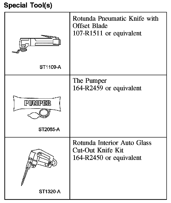 12. CAUTION: Pump special tool 164-R2459 or equivalent slowly as cowl adhesive is cut to avoid breaking glass.