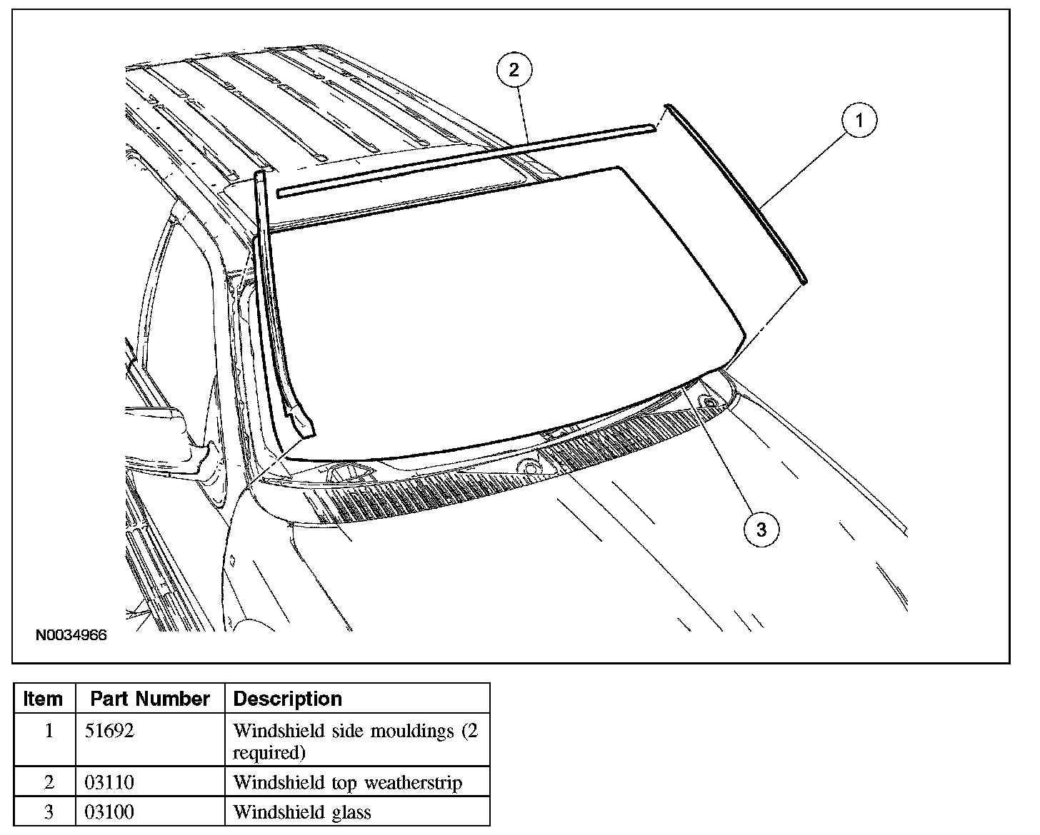 CAUTION: Do not drive the vehicle after installing windshield glass until the urethane adhesive has cured. Inadequate curing of the urethane adhesive adversely affects the strength of the urethane adhesive bond.