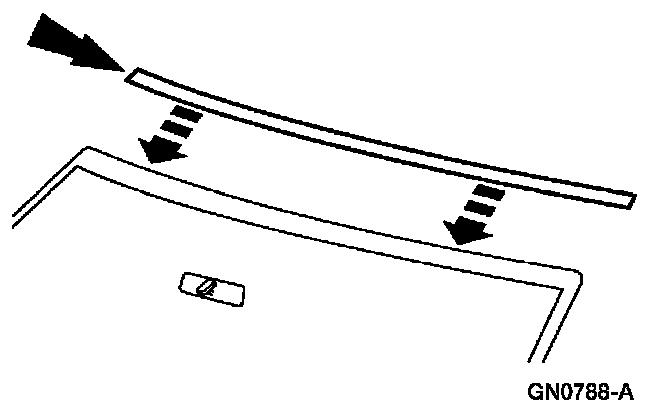 8. CAUTION: Do not drive the vehicle after installing windshield glass until the urethane adhesive has cured. Inadequate curing of the urethane adhesive adversely affects the strength of the urethane adhesive bond.