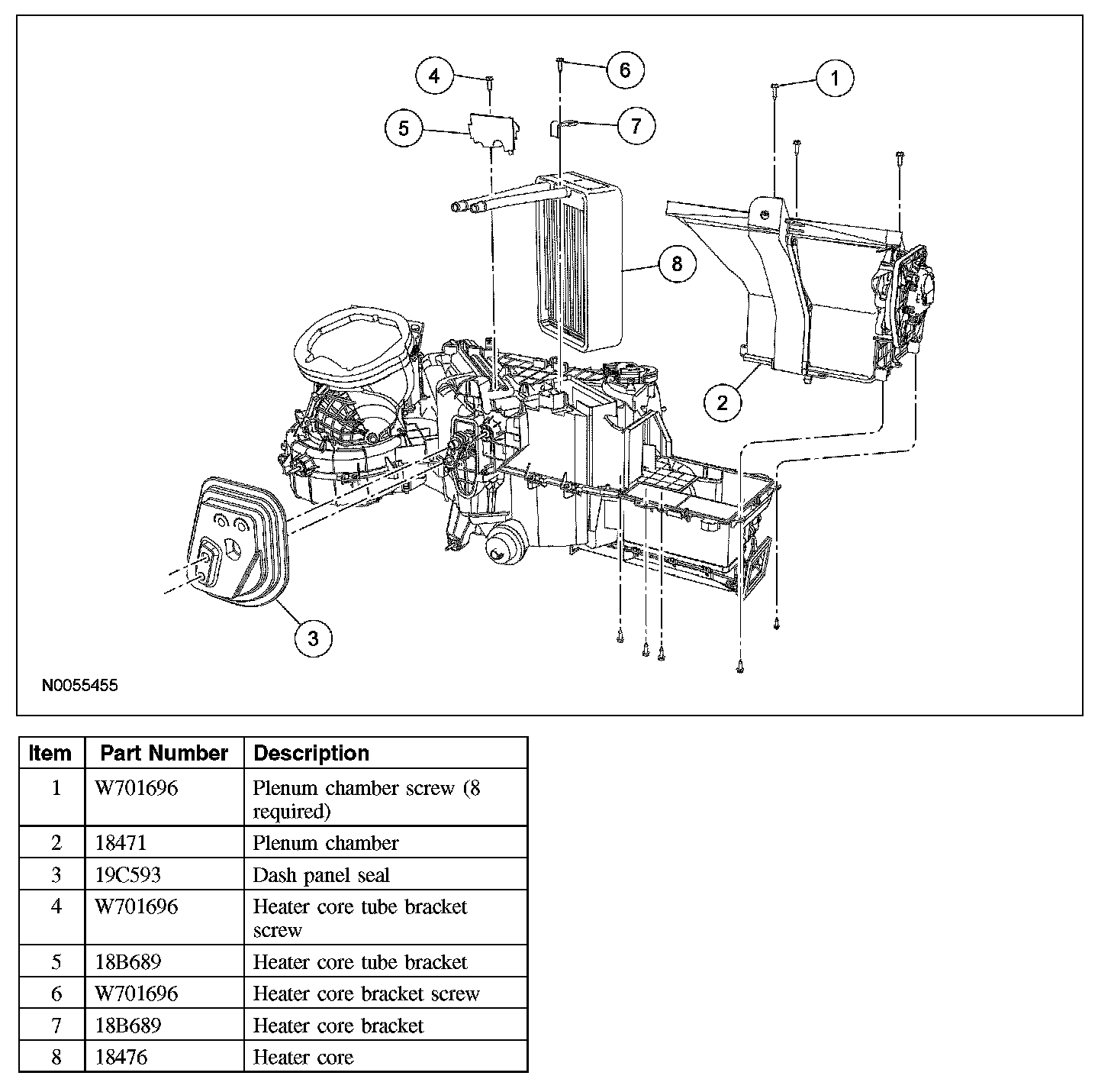 1. Remove the heater core and evaporator core housing. Housing Assembly HVAC