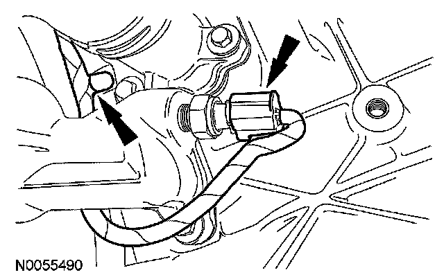 23. Disconnect the wiring harness position retainer and the crankshaft position (CKP) sensor and A/C compressor electrical connectors.