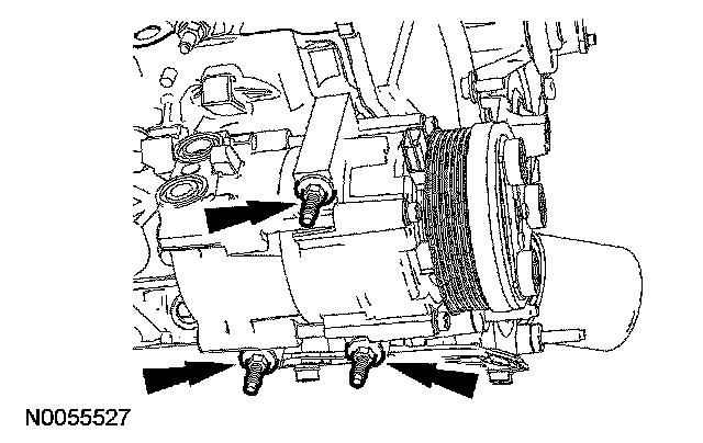 24. Remove the 3 stud bolts and position the A/C compressor aside.