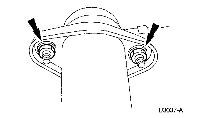 33. Remove the upper 2 transmission-to-engine bolts and install the special tool.