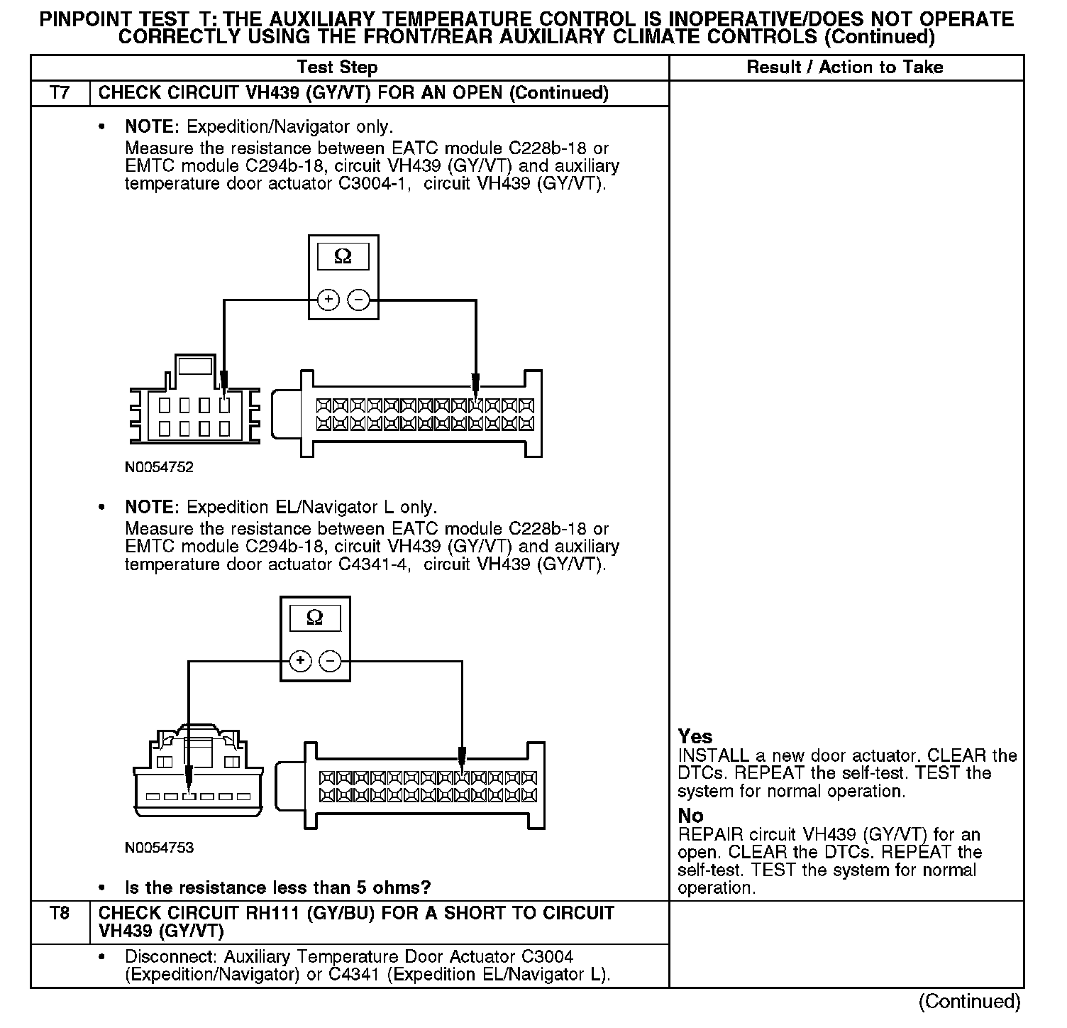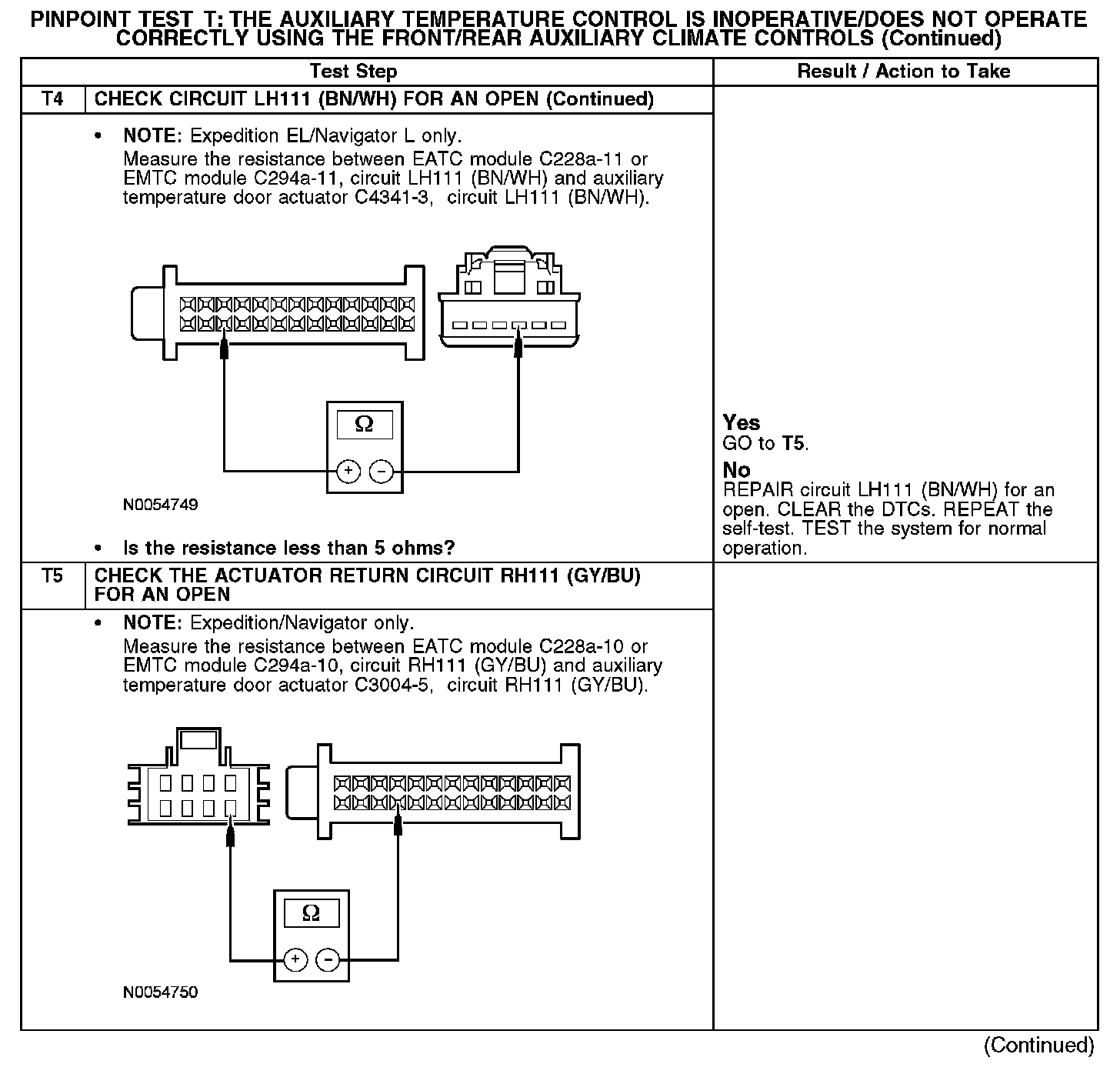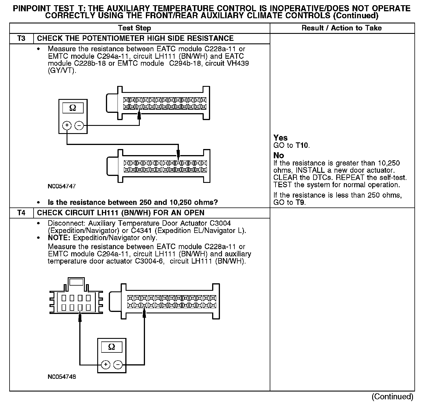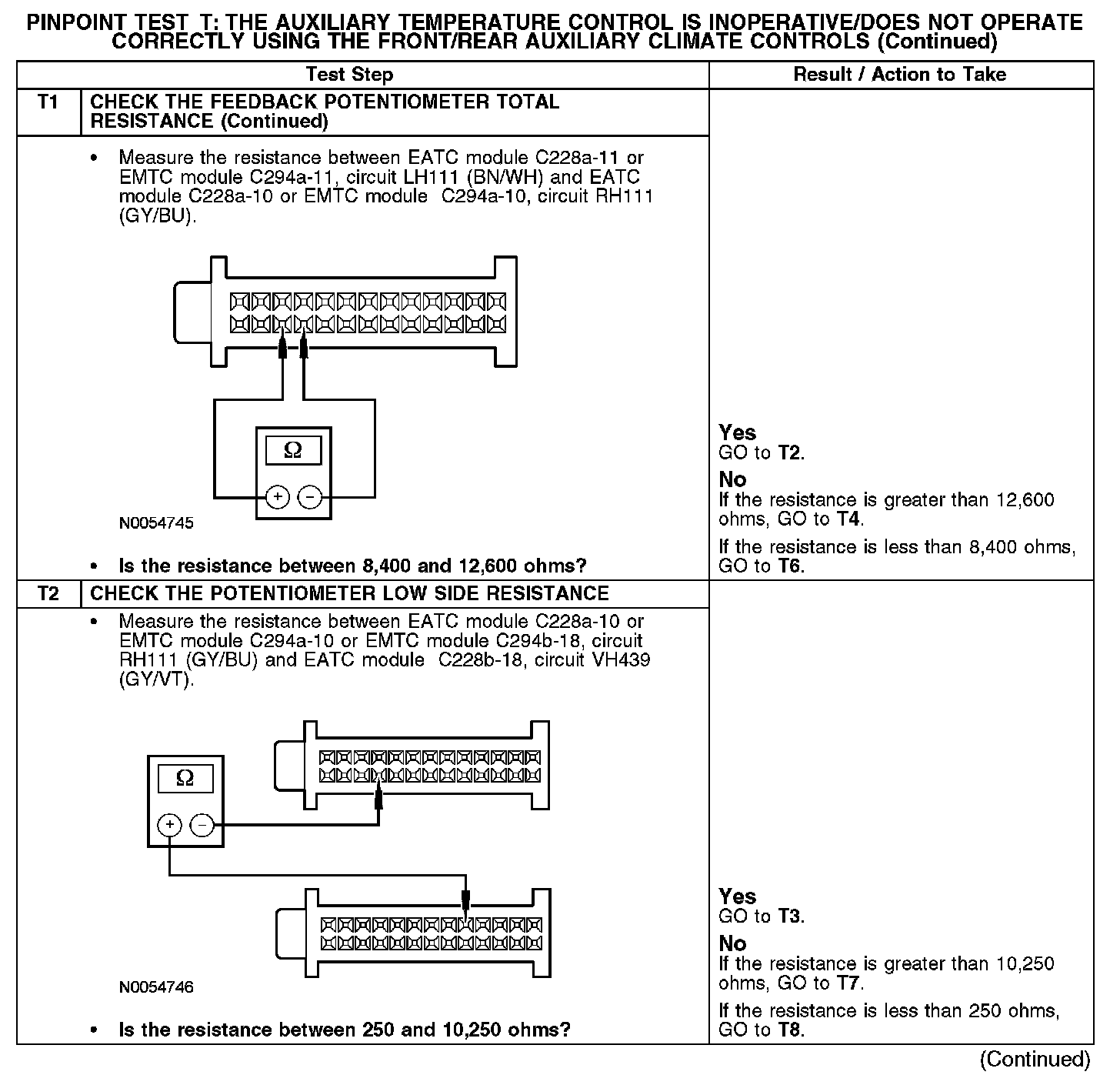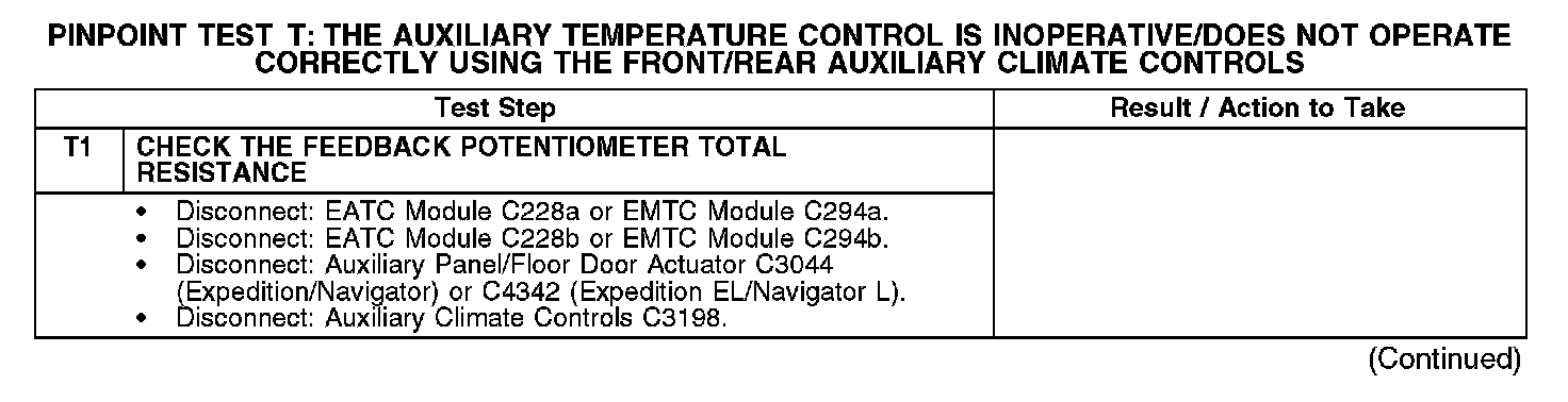 PINPOINT TEST T: THE AUXILIARY TEMPERATURE CONTROL IS INOPERATIVE/DOES NOT OPERATE CORRECTLY USING THE FRONT/REAR AUXILIARY CLIMATE CONTROLST1: