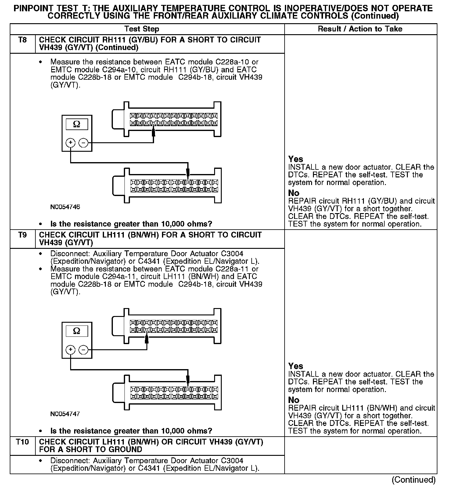 - A short together in circuits CH233 (VT/BN), CH234 (YE/GN), RH111 (GY/BU), LH111 (BN/WH) and VH439 (GY/VT)